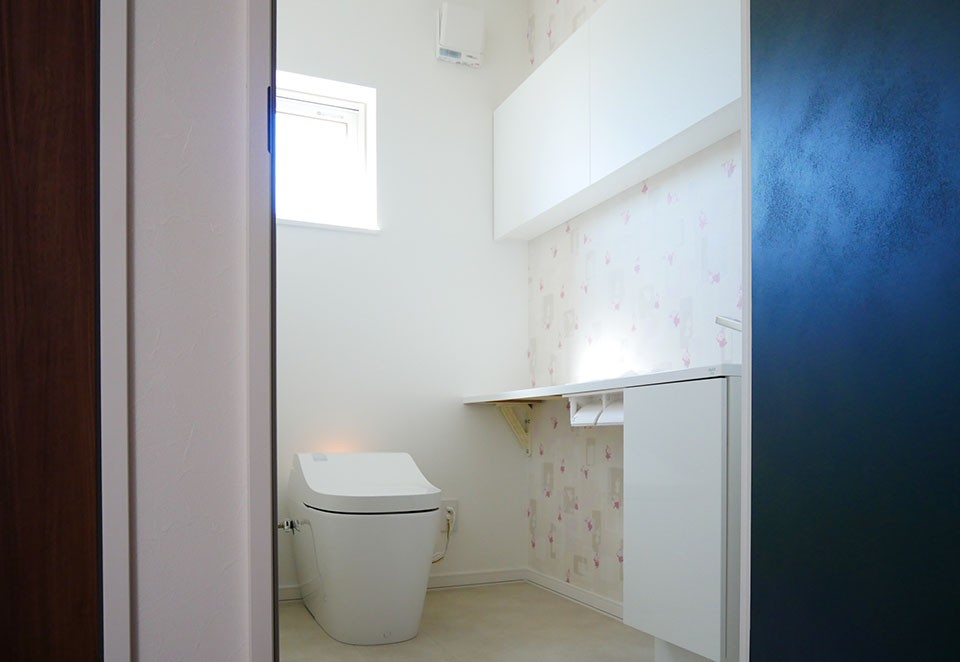 トイレは薄型の収納を造作し、スペースを有効に使えるようにしました。